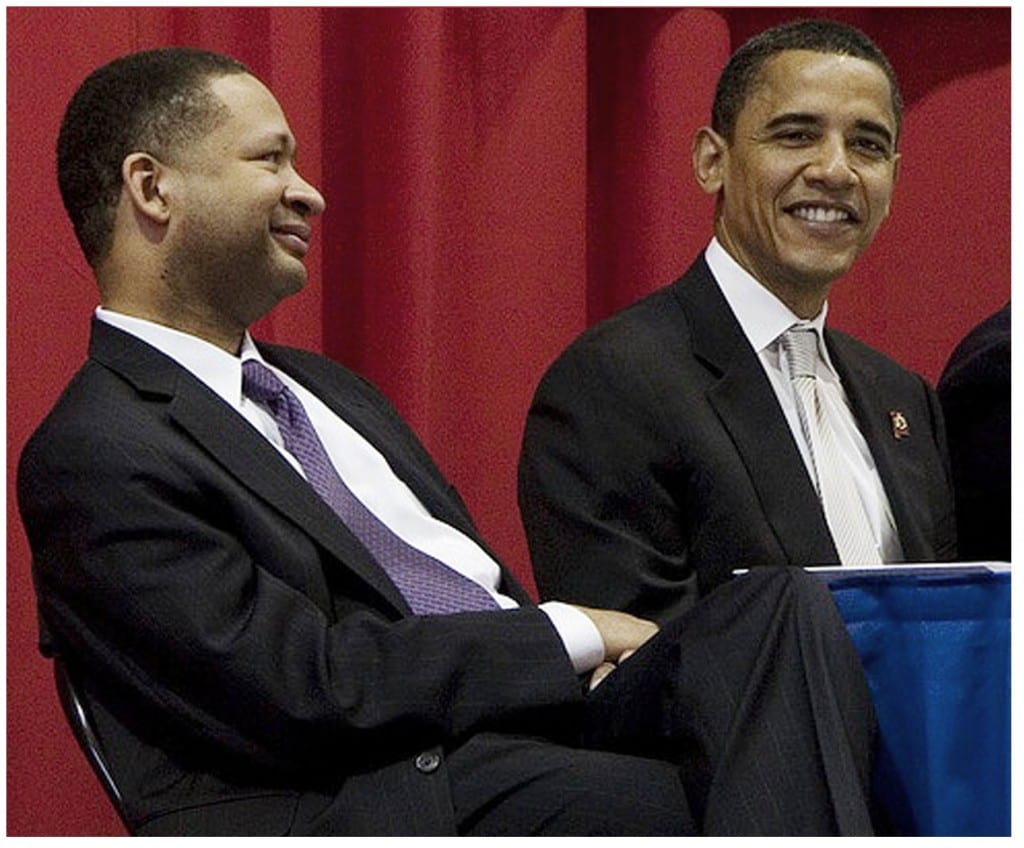Trong suốt ba năm ở Harvard, Obama đã gây được sự tin tưởng đặc biệt với nhiều bạn học. Artur Davis (phải), người tốt nghiệp sau Obama hai năm và sau này trở thành chính trị gia, thực sự bị thuyết phục từ thời sinh viên rằng Obama có tố chất của một thẩm phán tương lai của Tối cao Pháp viện Hoa Kỳ. Ảnh: Politics365.