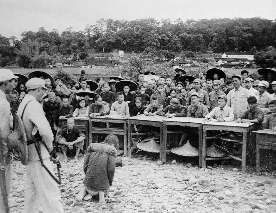 Một người Trung Quốc bị cáo buộc là “địa chủ” đang bị xét xử trước một “toà án nhân dân” ở Quảng Đông vào tháng 7/1952 trong phong trào “Cải cách ruộng đất” do đảng Cộng sản Trung Quốc tiến hành. Ảnh: Bettmann/Corbis/AP Images.