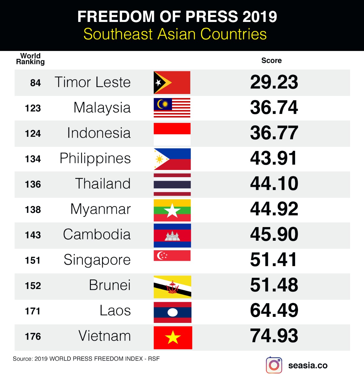 Còn theo bảng xếp hạng tự do báo chí của RSF trong năm 2020, Việt Nam đứng gần chót bảng, thứ 175 trên 180 nước.